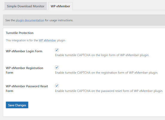 You can use our free Bot Protection with Turnstile plugin to easily add Cloudflare’s Turnstile CAPTCHA to your WP eMember plugin’s registration, login, and password reset forms.
